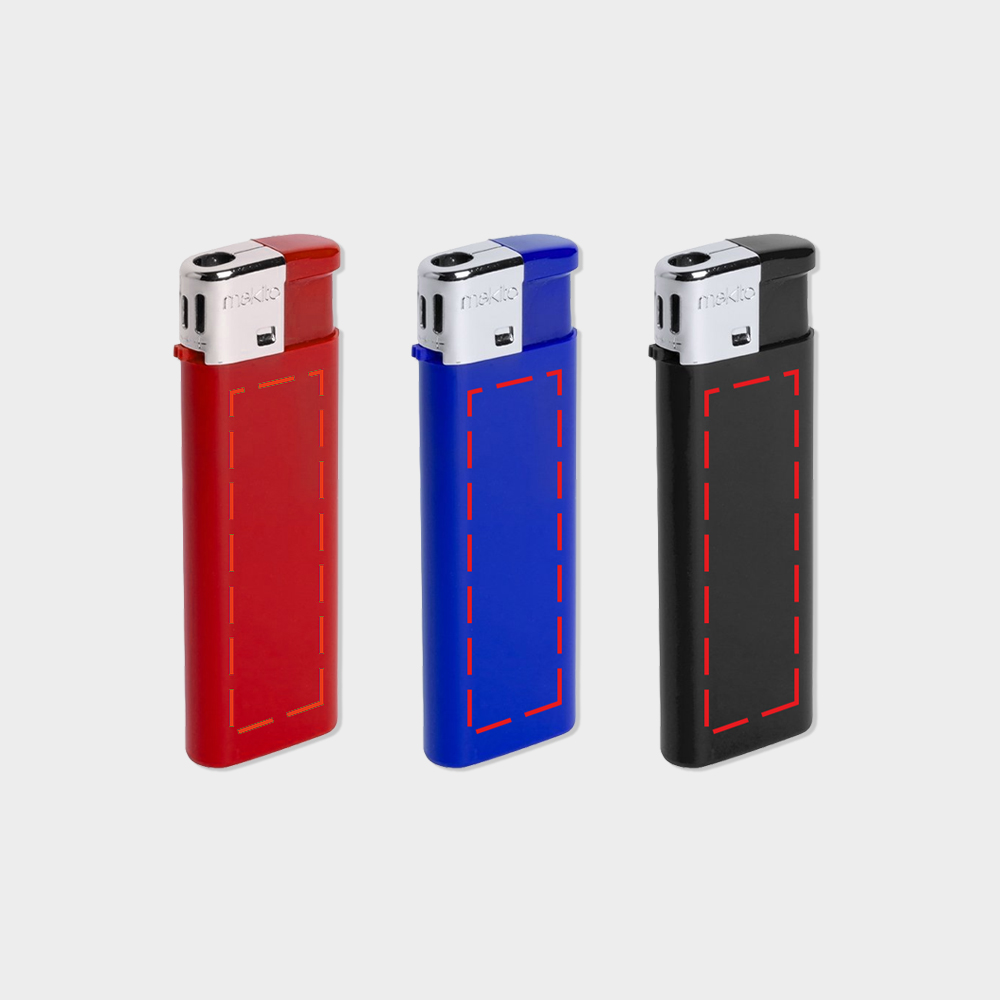 Noir ou bleu ou rouge, briquet rechargeable – Impression 1 couleur : 50 x 14 mm.